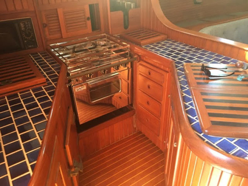 This Hans Christian 41 has the very desirable Molokai interior - The owner's stateroom is located forward with a queen size berth, separate shower, head and vanity. The guest stateroom has a queen size berth located aft of the galley with another head opposite on the starboard side. There is a full size navigation station, galley with lots of counter space, and a dinette arrangement forward of the galley, and two captain's chairs on the starboard side of the salon.