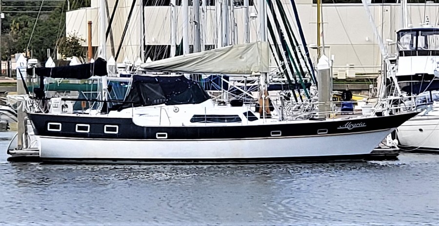 A true blue water sailboat and a very comfortable liveaboard cruiser. The center cockpit and raised salon are ideal for long-range cruising and liveaboard comfort. Her beautiful lines will turn heads in any anchorage, and her gorgeous interior will get rave reviews from all visitors.