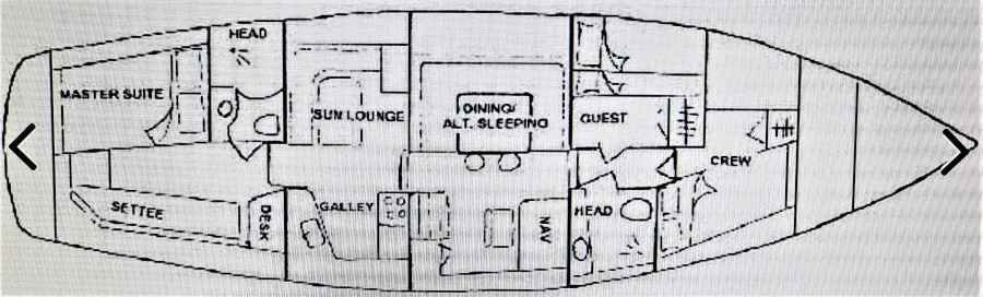Designed by Van de Stadt, was built in fiberglass by the world renowned Trintella shipyard in Holland. This vessel’s safety and integrity are enhanced by a watertight forward bulkhead, multiple tanks integral to the hull along the keel and stringers every 16”. These structural features make her an extremely sound vessel capable in severe sea conditions. Her versatile ketch – cutter rig provides multiple sail options to suit various wind conditions, heavy and light. Both her masts are on tabernacles allowing them to fold down for the canals of Europe or to get under low bridges