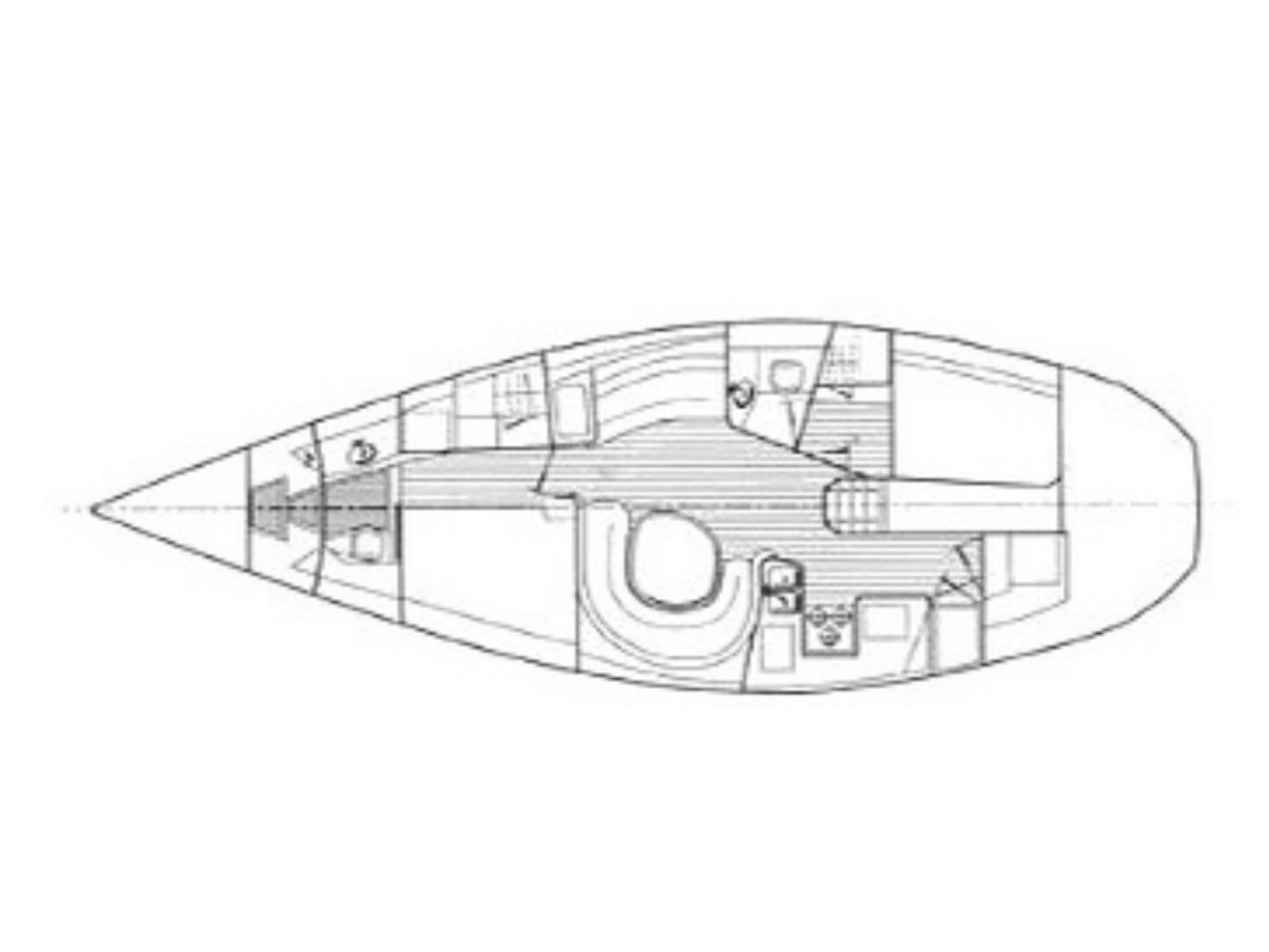 - Garhauer traveler mounted forward of companionway, ensuring maximum cockpit usability.