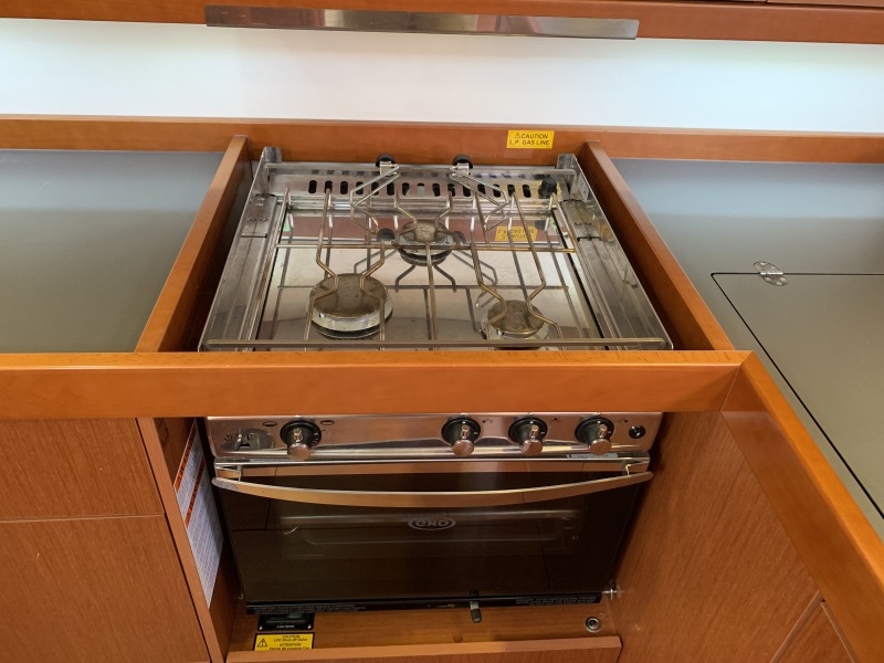 To port just aft is the galley allowing anyone who is preparing food to be part of the salon group too.